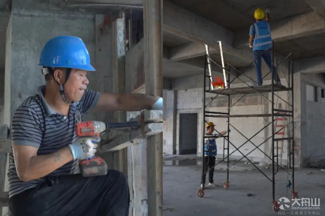 另一处,几名工人也正在抓紧包构造柱,并同步开展粉刷作业。目前,二次结构施工阶段已接近尾声,预计下月将拆除脚手架,进入市政施工阶段。
