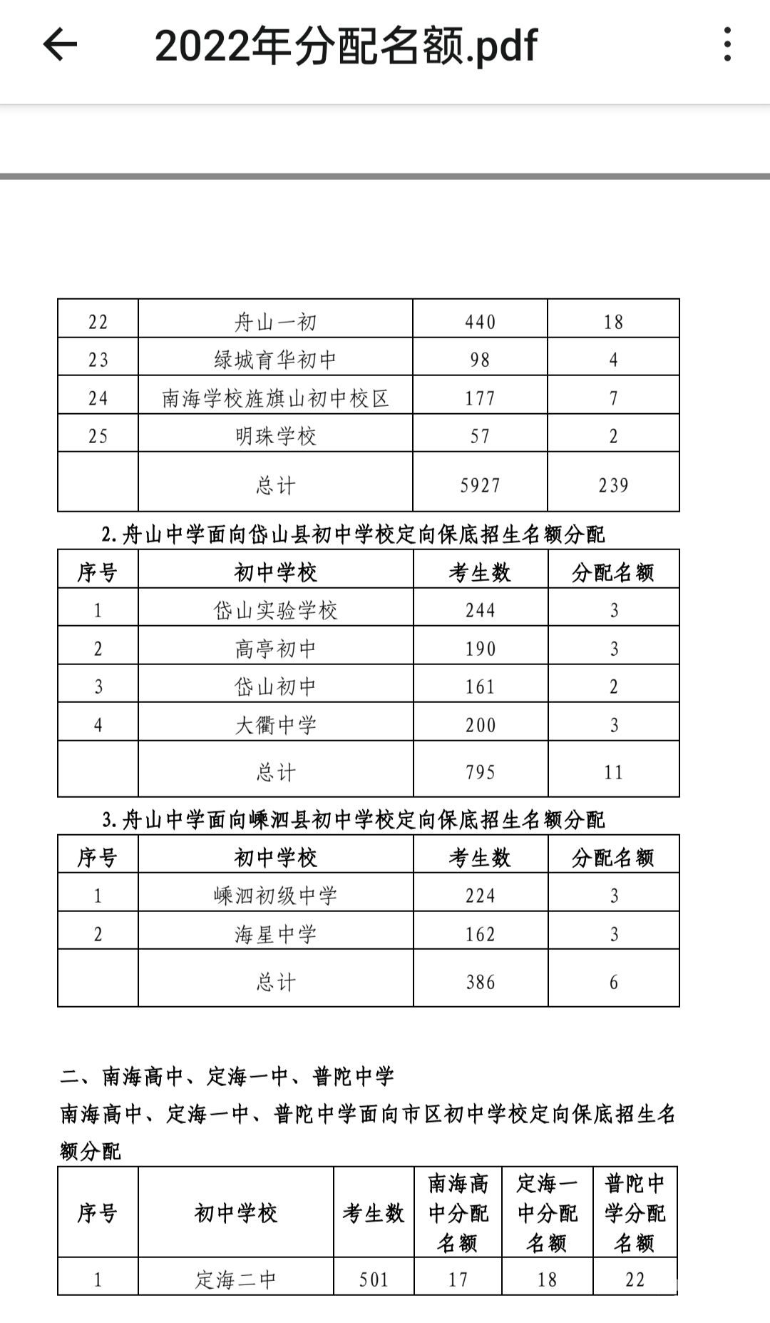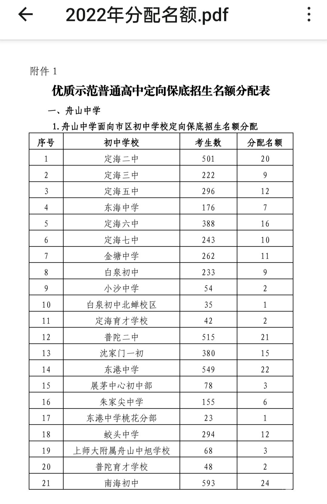 最新公告:舟山各高中招生人数公布!舟中427人!