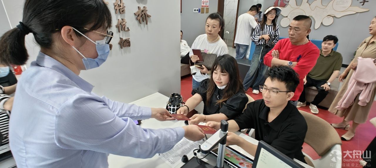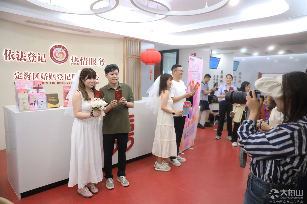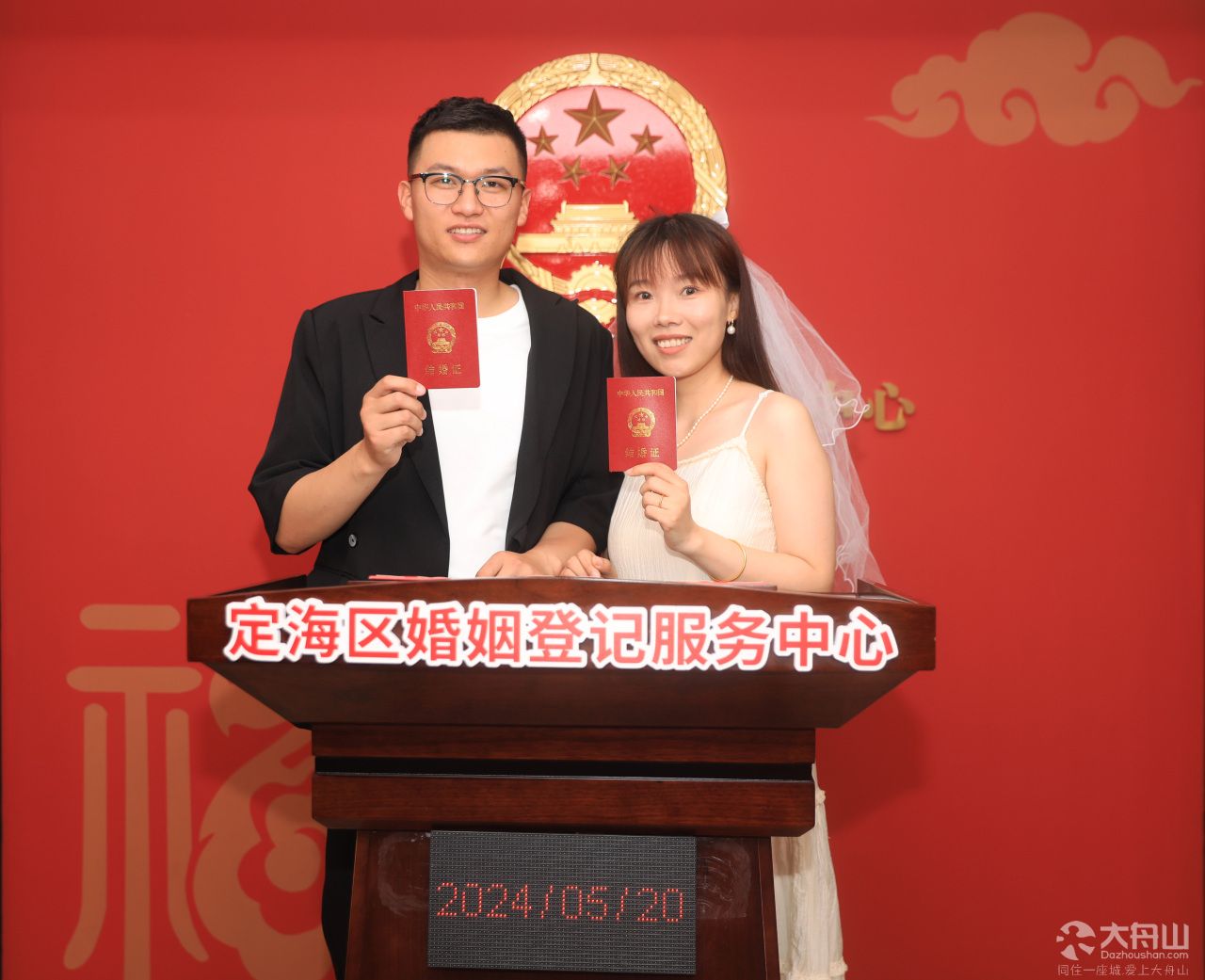 5月20日,舟山市定海区婚姻登记服务中心迎来许多新人登记结婚。