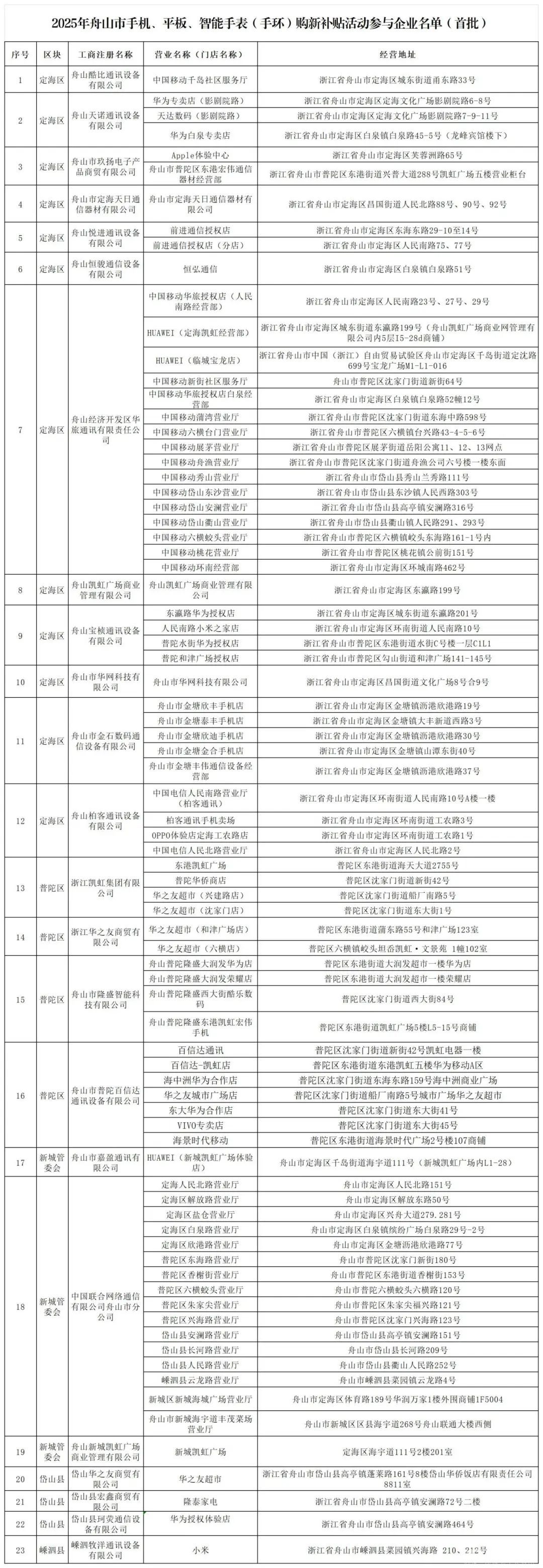 首批门店公布!今天起,舟山买手机电脑有补贴啦!